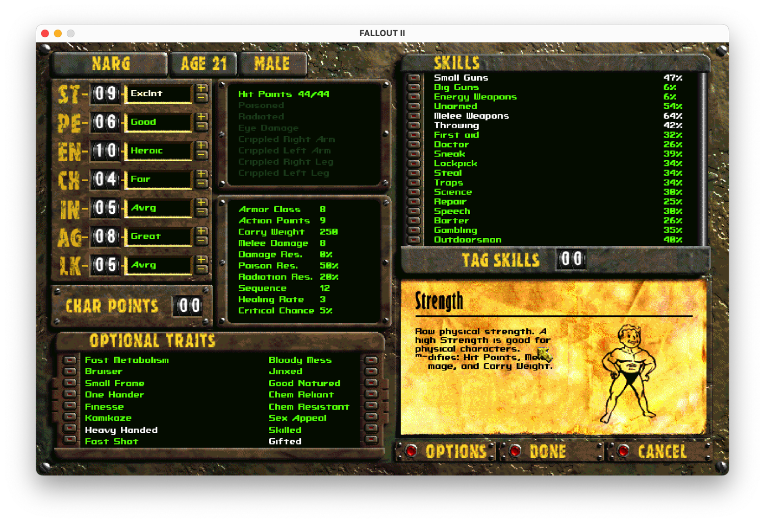 Drop the app into your Fallout 2 or TC install and you are ready to go!